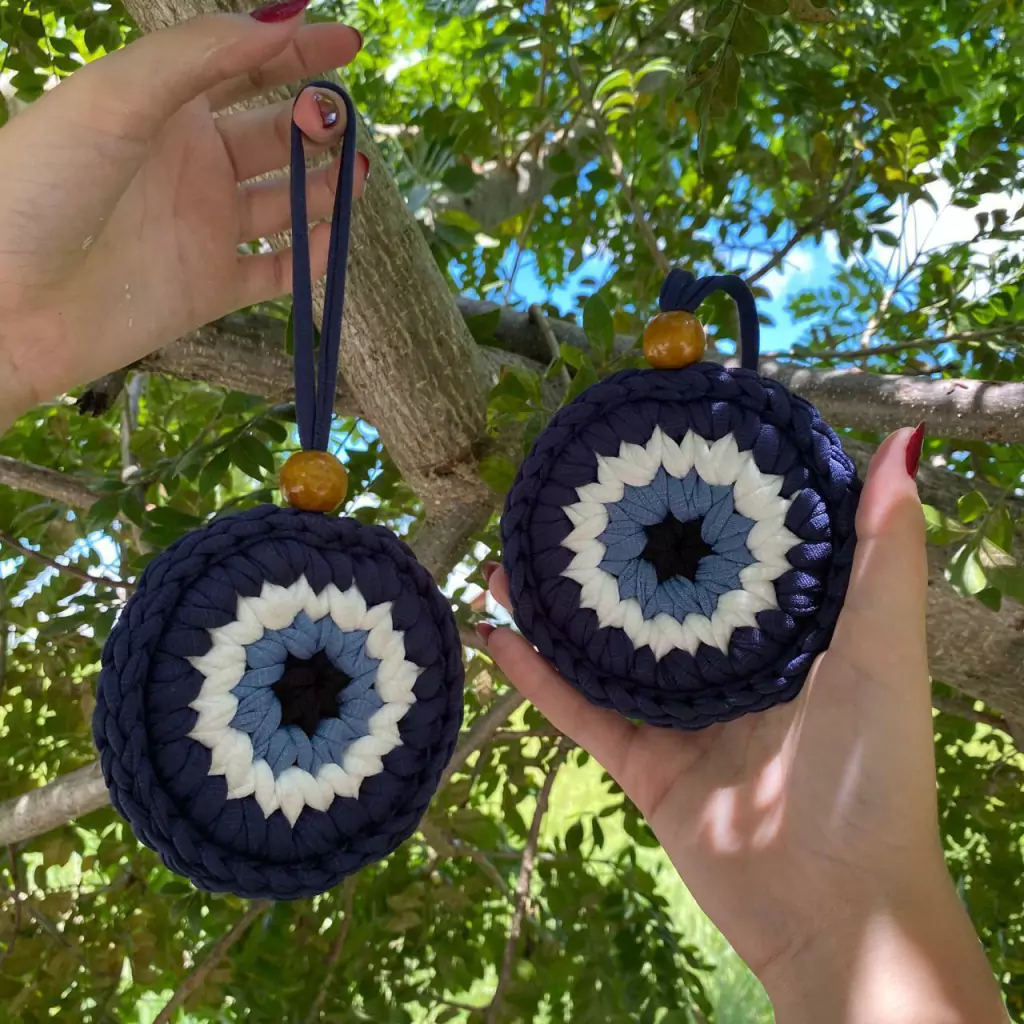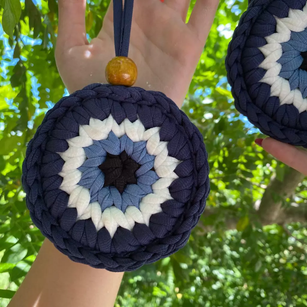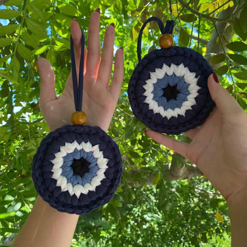 Kit 02 Mandalas de Olho Grego feita em Crochê com fio de malha extra premium.