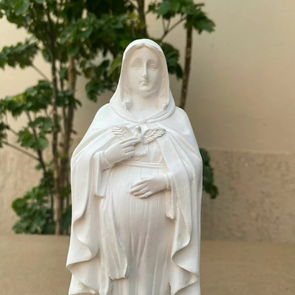 Kit 3 Nossa Senhora Grávida 20cm Perolada Com Detalhes Dourados