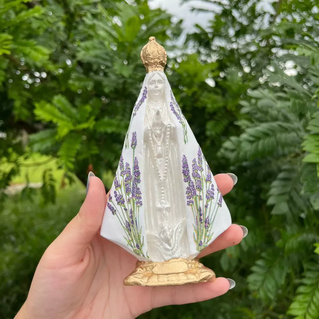 Kit 4 Imagem de Nossa Senhora Aparecida 15cm com estampa de Decoupage Lavanda.