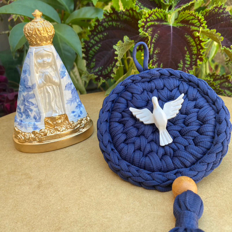 mandala azul marinho , do divino Espírito Santo , feita à mão, trabalhada em crochê com fio de malha 12cm de diâmetro e 30cm de comprimento