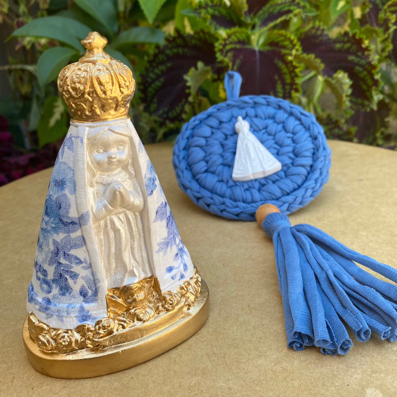 Kit Nossa Senhora Aparecida Baby Decoupage e Mandala de Nossa Senhora Aparecida no Crochê , ideal para presentear uma pessoa querida, ótima opção para presentear padrinhos de Batismo !