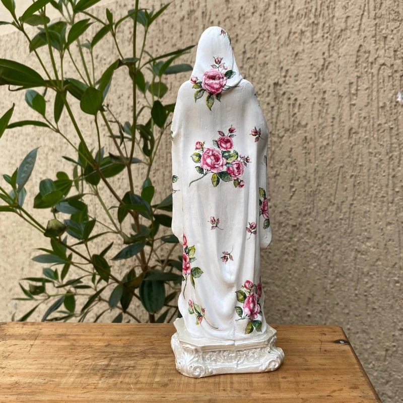 Kit Nossa Senhora Grávida 20cm com Mandala de crochê 12cm de diâmetro e 30cm de comprimento.