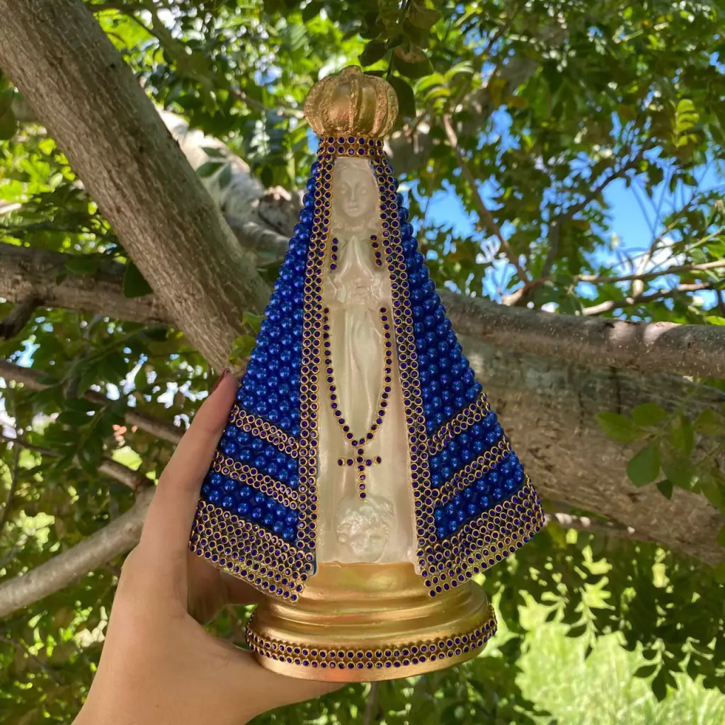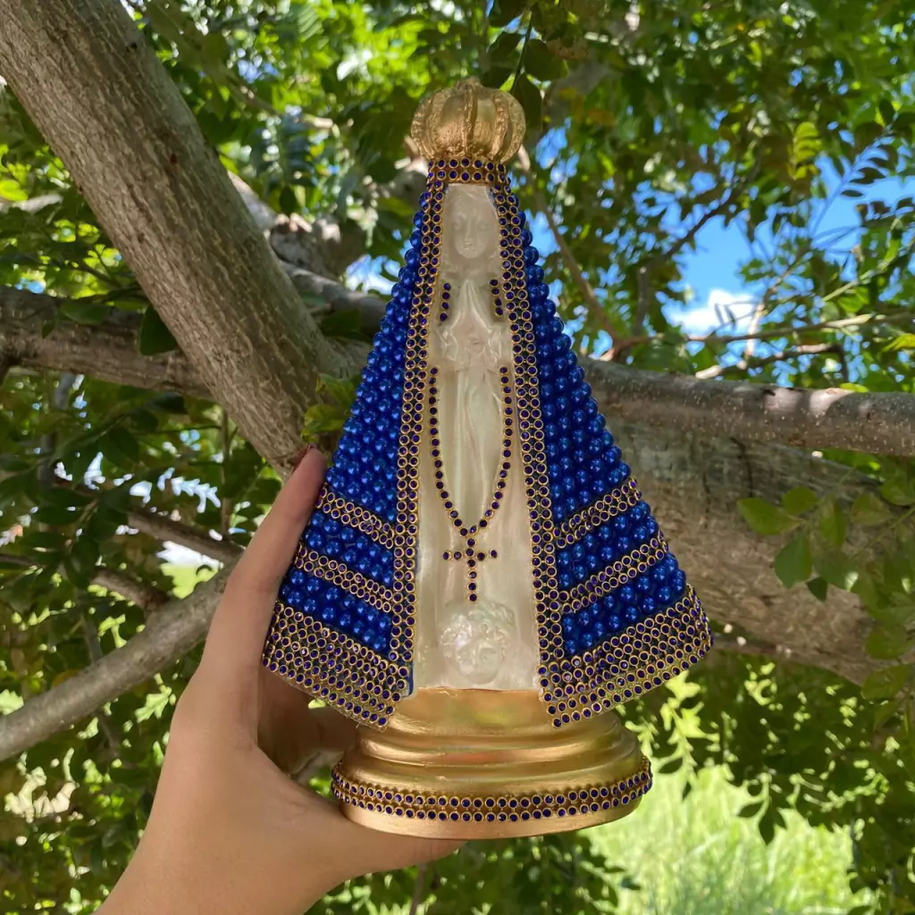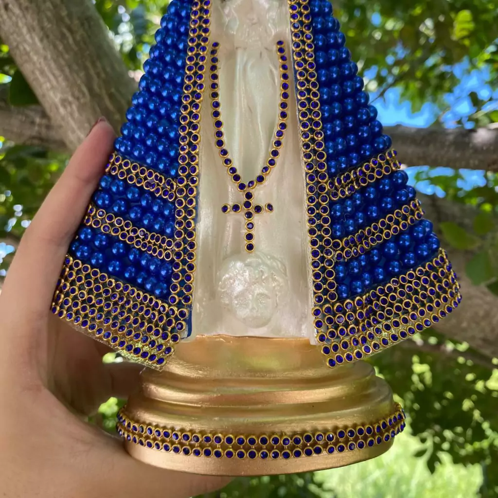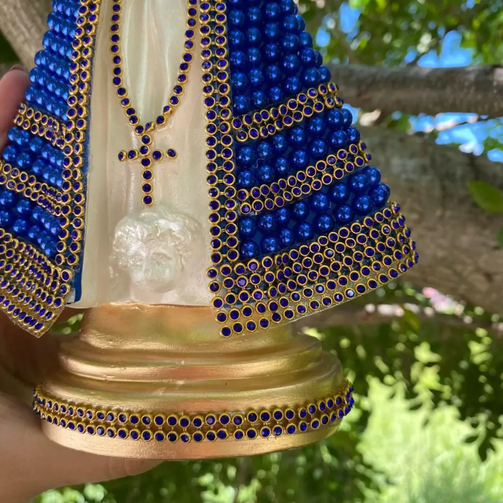 01 Linda imagem de Nossa Senhora Aparecida 22cm Luxo Pérola azul com centro branco