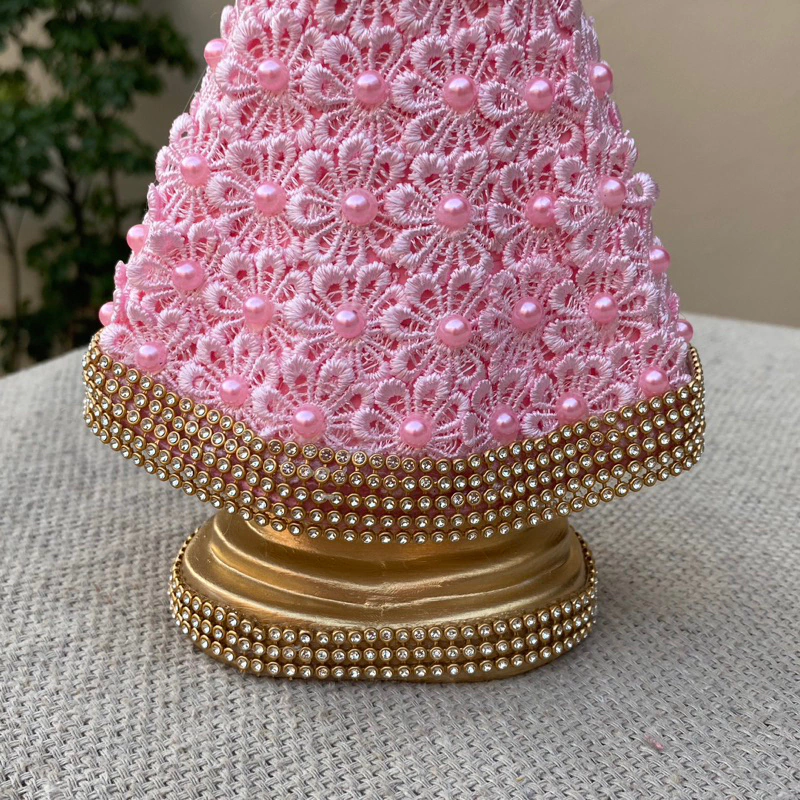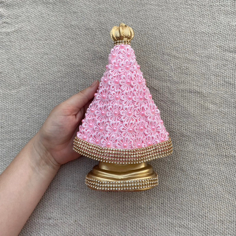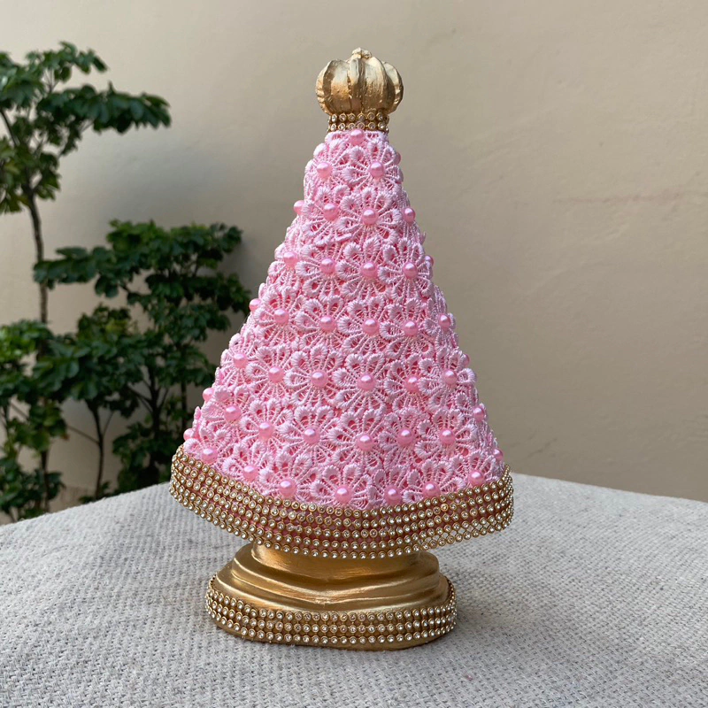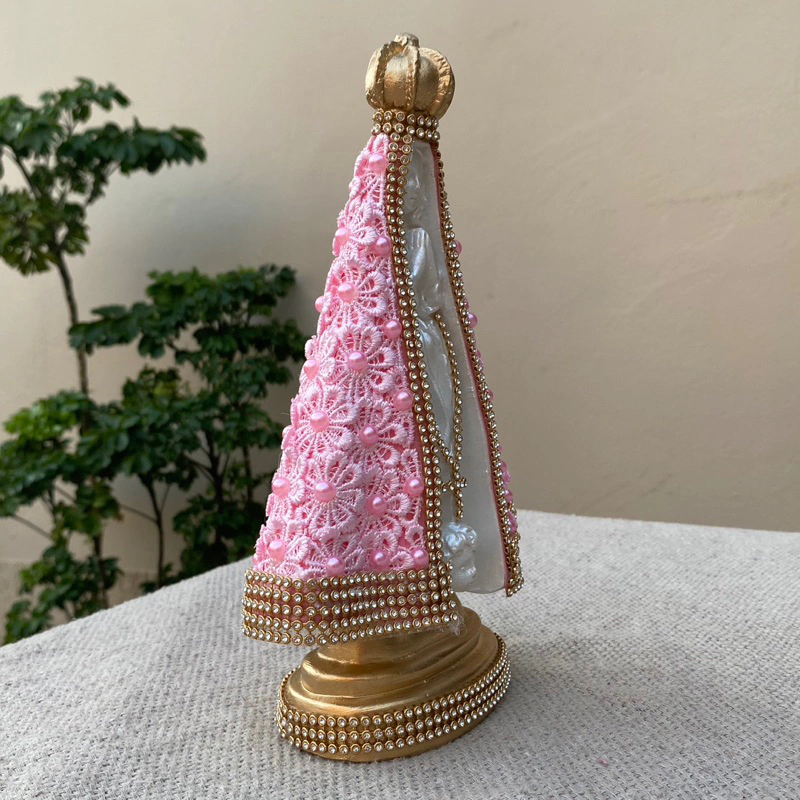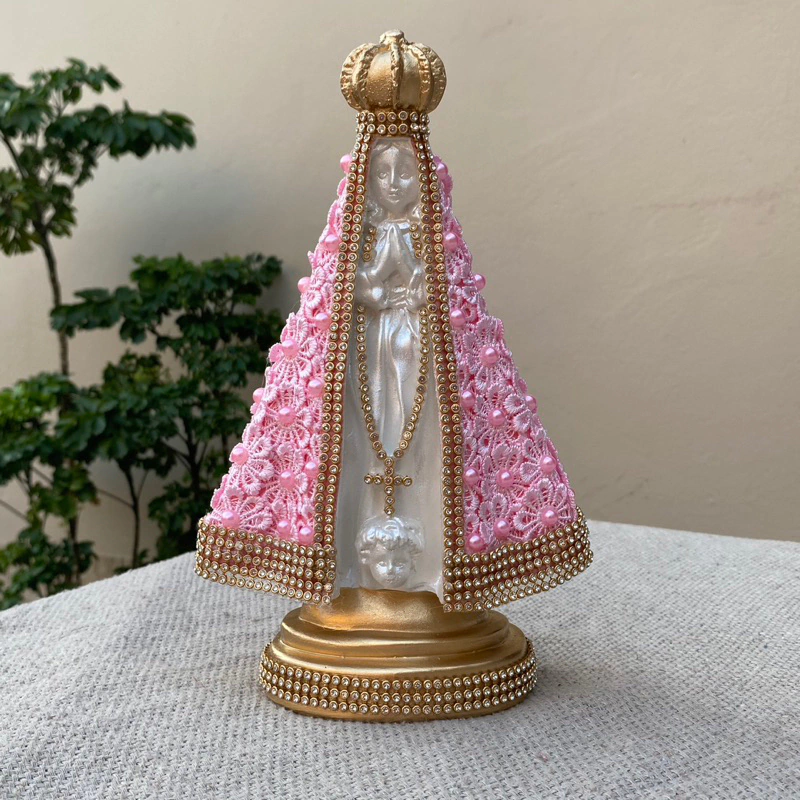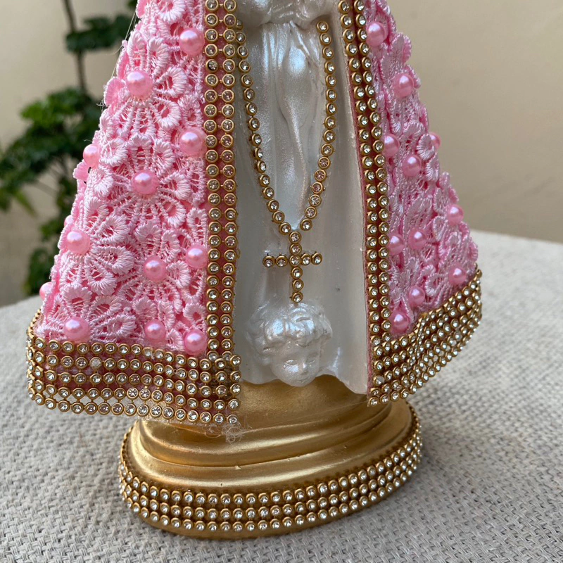 Linda Imagem de Nossa Senhora Aparecida 22cm com Guipir e Pérola Rosa