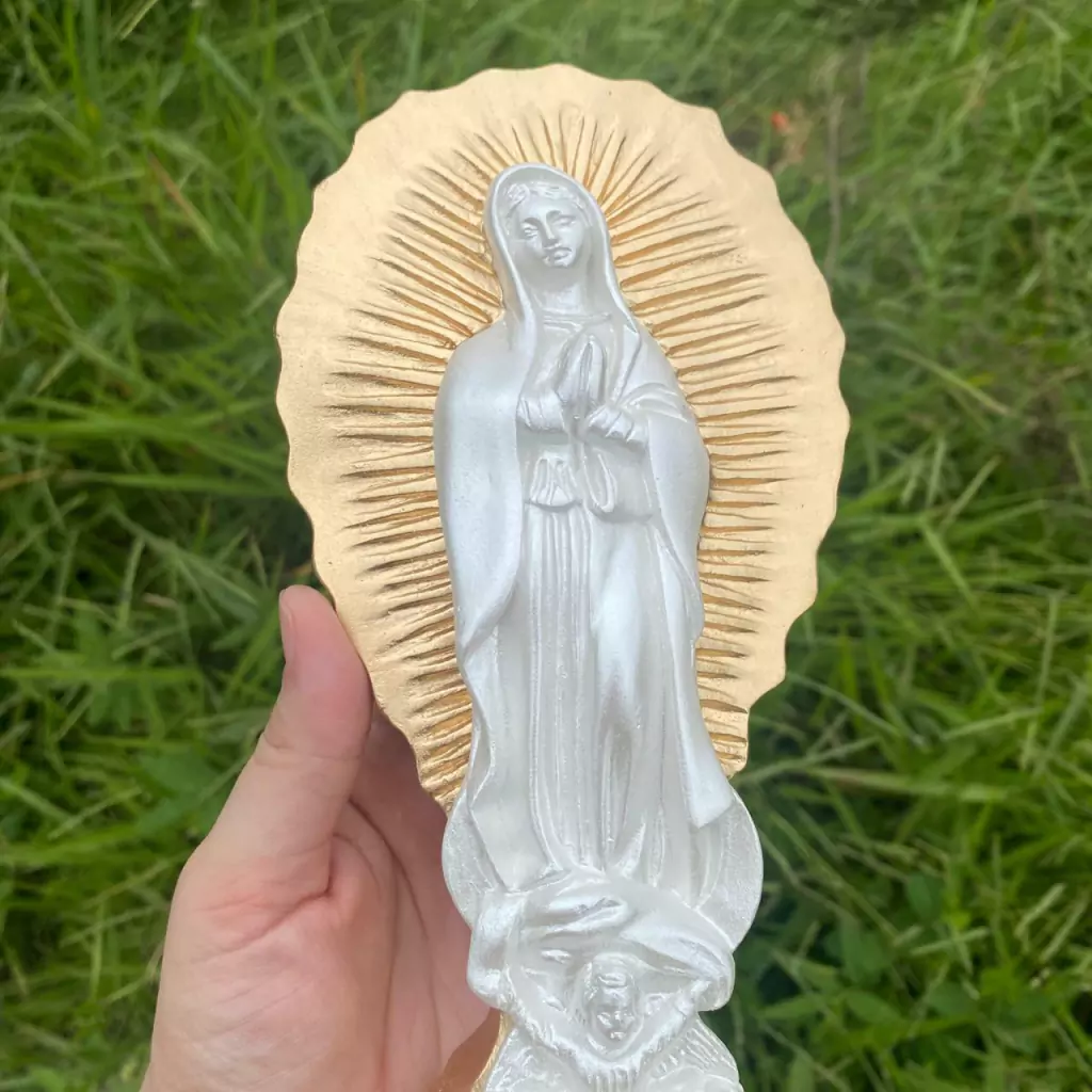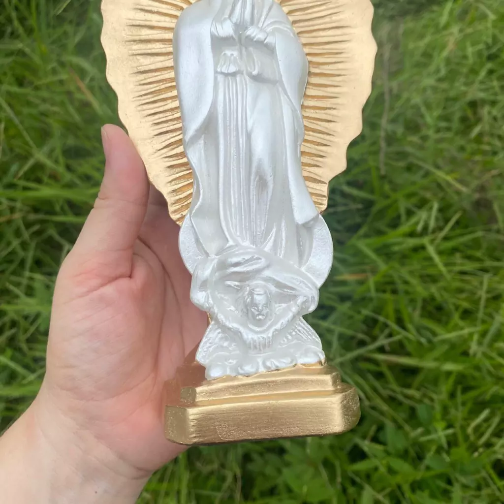 01 Imagem de gesso de Nossa Senhora Guadalupe perolada com detalhe dourado.